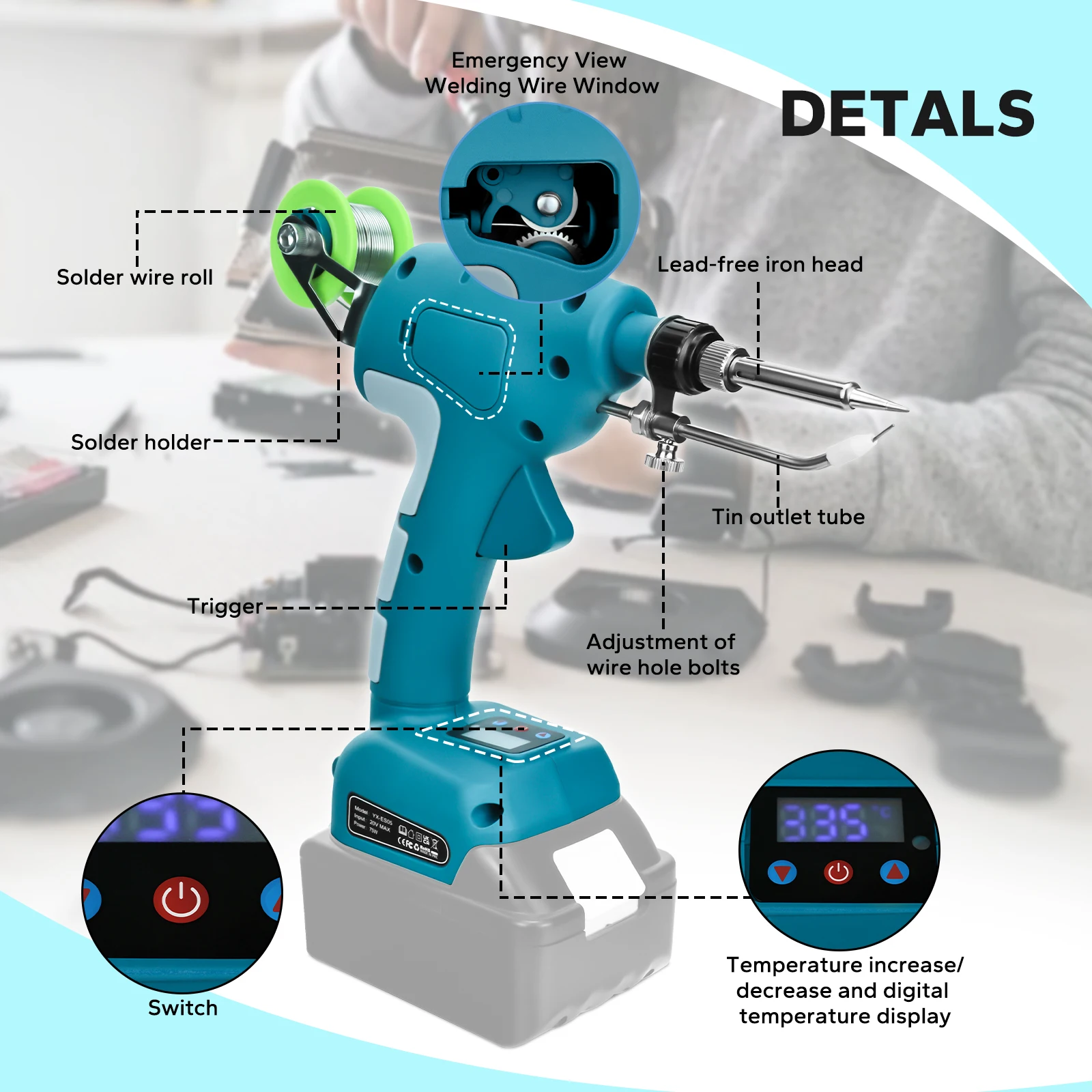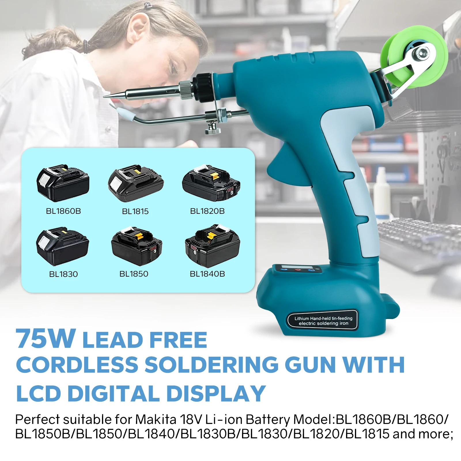 Fer à Souder Sans Fil 75W – Compatible Batteries Makita 18V | Affichage Digital & Température Réglable