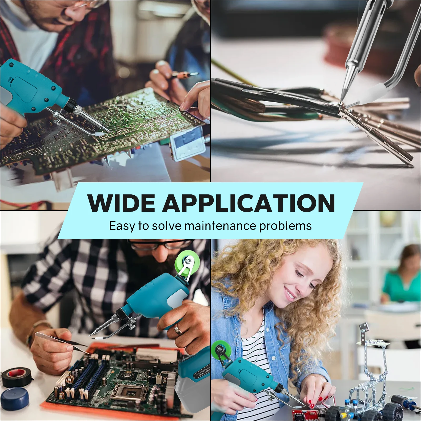- Fabriqué avec des matériaux robustes, équipé d’une protection basse tension intégrée, ce fer à souder est léger, compact, sans station de soudage nécessaire. Branchez une batterie et commencez à travailler instantanément.